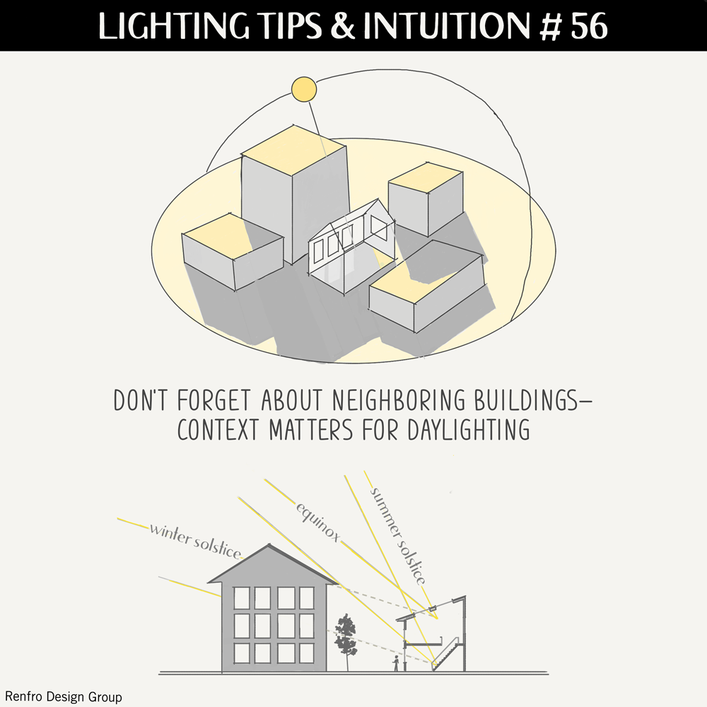 When creating daylighting designs, don't forget about neighboring buildings. Put your project into context of surrounding structures.